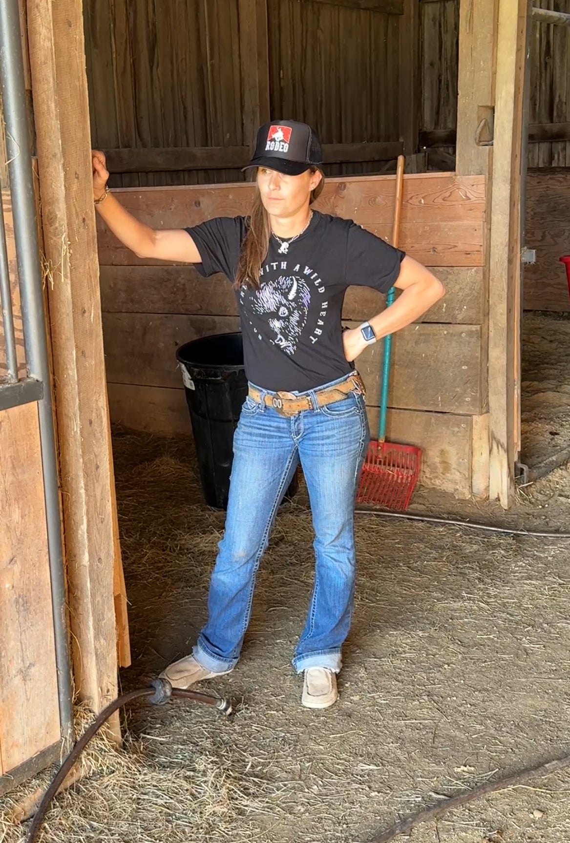 Roam Free with a Wild Heart Heavy Weight Jersey style tee with the R,W&B to the Bone logo has a soft to the touch feel with a longer body length to accommodate riding styles.
